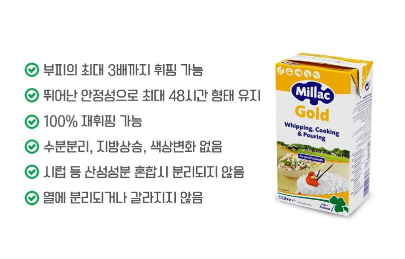 상품명 : 밀락골드 휘핑크림 1L/12입/ 무가당 기능성 생크림
