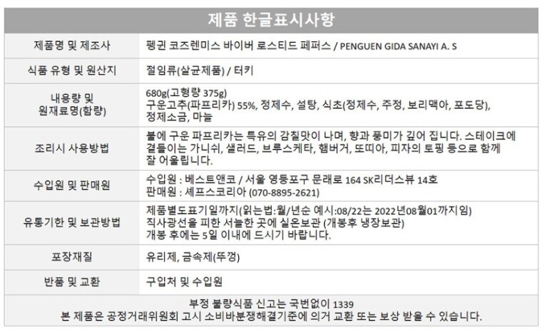 펭귄 로스티드 페퍼스 (빨강파프리카) 680g